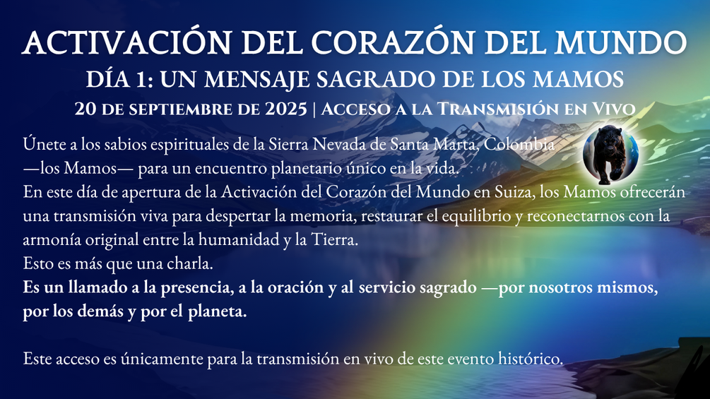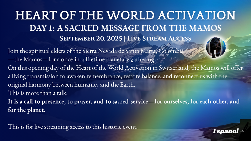 From the Alps to the Andes, we will activate our hearts and unite them with the From the Alps to the Andes, we will activate our hearts and unite them with the heartbeat of the Earth. This day marks the opening of the Heart of the World Activation—a planetary gathering guided by the Mamos, spiritual elders of the Sierra Nevada de Santa Marta, Colombia.